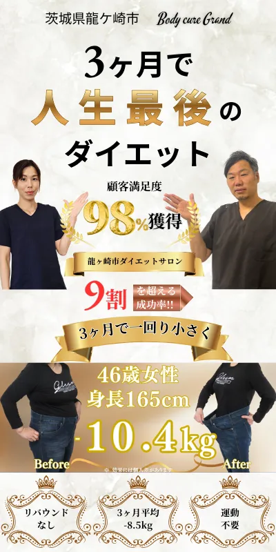 Body cure Grandは、"ただ痩せる"だけではなく、"生まれ変わるように整う"場所です。あなたも、心も体も軽くなる変化を体感してみませんか?